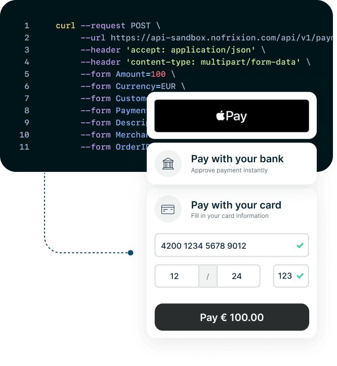 NoFrixion Ltd is authorised as an Electronic Money Institution (EMI) by the Central Bank of Ireland under firm reference number CBI00458163. Although the Central Bank of Ireland’s Deposit Guarantee Scheme does not apply to Electronic Money Institutions, NoFrixion ensures the full protection of customer funds, in line with regulatory requirements. NoFrixion is compliant with the Payment Card Industry - Data Security Standard (PCI-DSS), maintaining the highest standards for payment security.