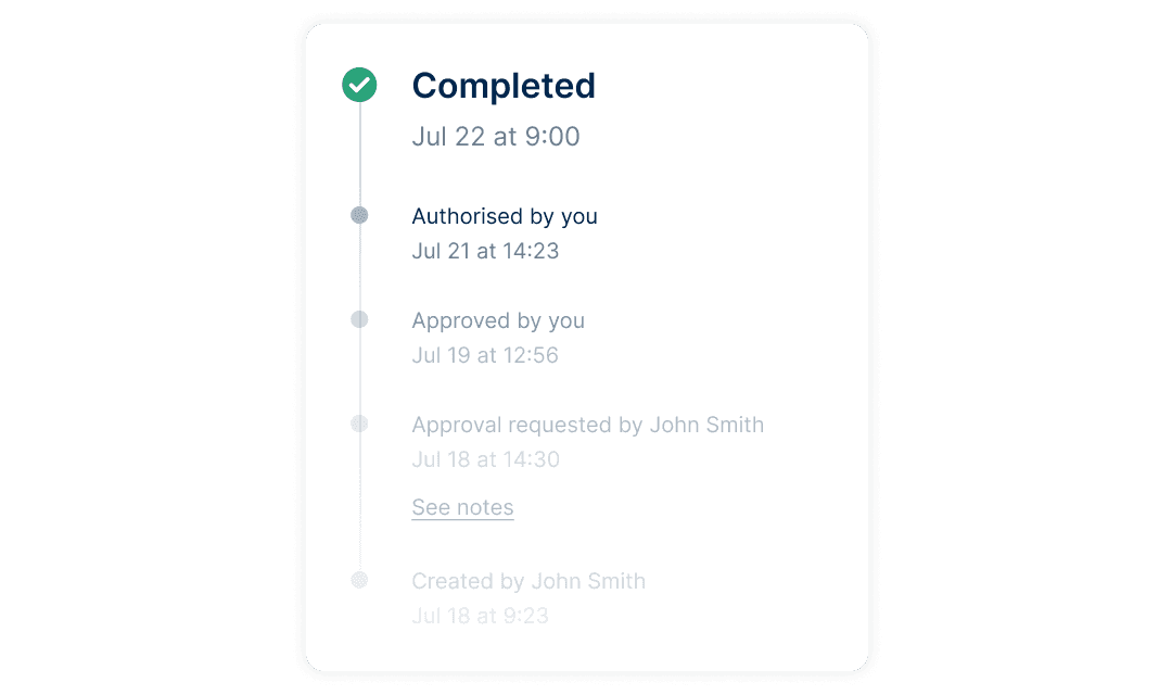 Our platform records every transaction and action taken on the platform, providing a detailed, immutable log that is accessible at any time.